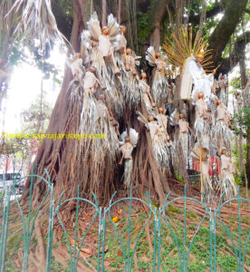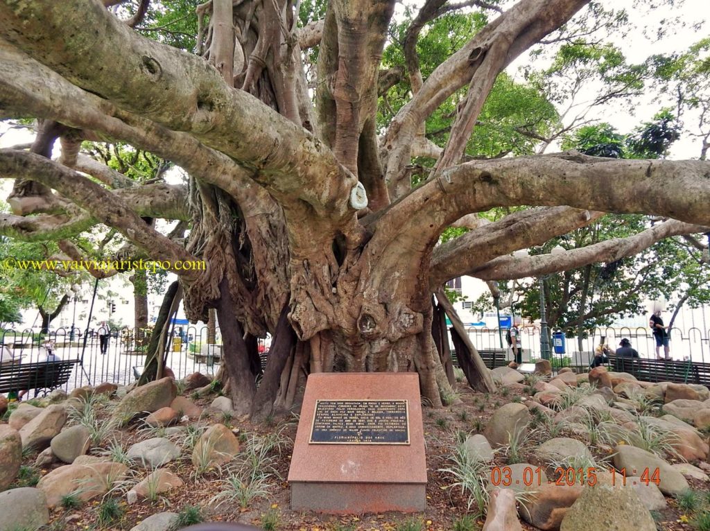 Pouco se sabe a respeito de seu plantio, a não ser que transplantaram a jovem em 1891 de um jardim em frente à Catedral, aos 20 anos de idade (repeteco da placa acima). Certamente quem a plantou deve estar em sua dimensão espiritual se sentindo o rei da cocada preta pelo importante feito. Nem plantador e nem aqueles que se deixam envolver no abraço de seus longos galhos, imaginariam que aquela jovem tão frágil se transformaria nesta gigantesca e respeitada senhora.