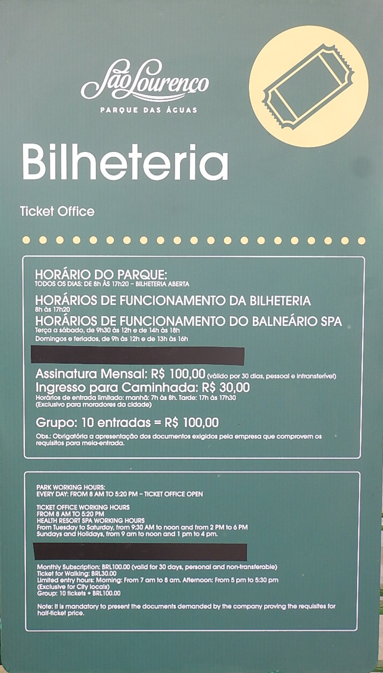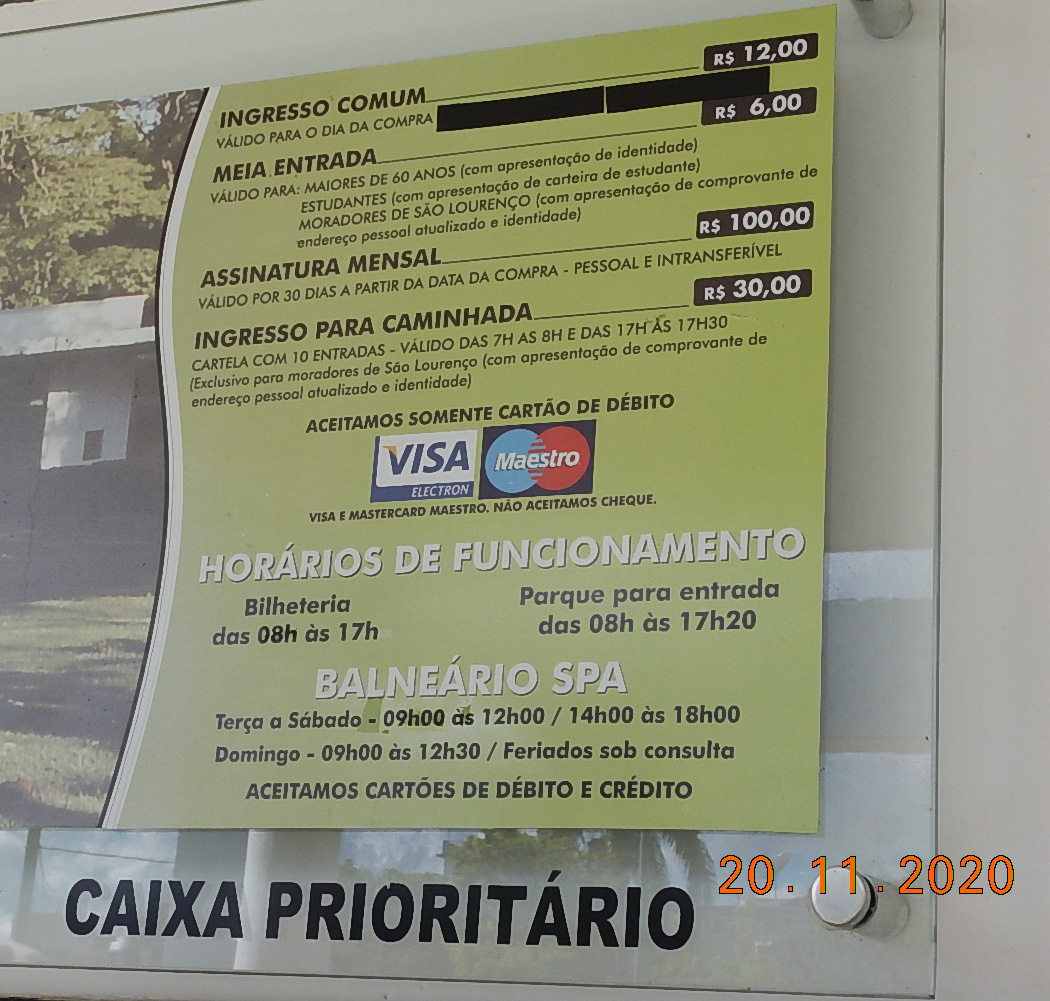 O horário de atendimento do balneário está fixado na portaria principal do parque, bem como no início desta postagem.