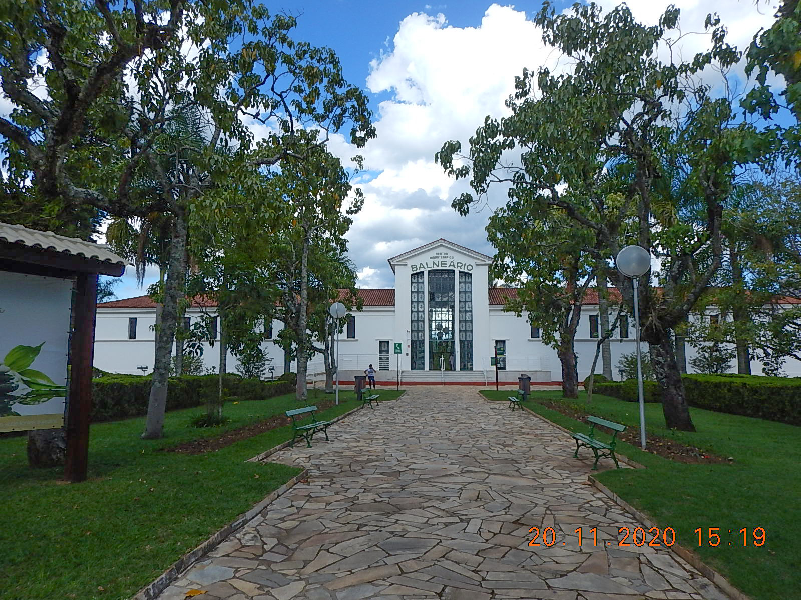 O prédio do balneário é tão bonito, que representa São Lourenço em cartões postais.