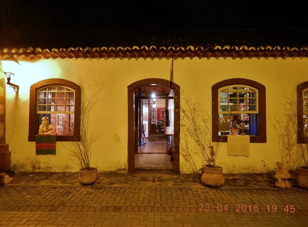chama-se CASA AÇORIANA ARTES & TRAMÓIAS ILHOAS por ocupar um casarão colonial do final século XVII há muitos e muitos anos. E…, ARTES & TRAMÓIAS ILHOAS, por tratar-se de uma variedade muito grande de obras de arte criadas por artesãos carinhosamente chamados de “manezinhos da ilha” que fazem muito sucesso.
