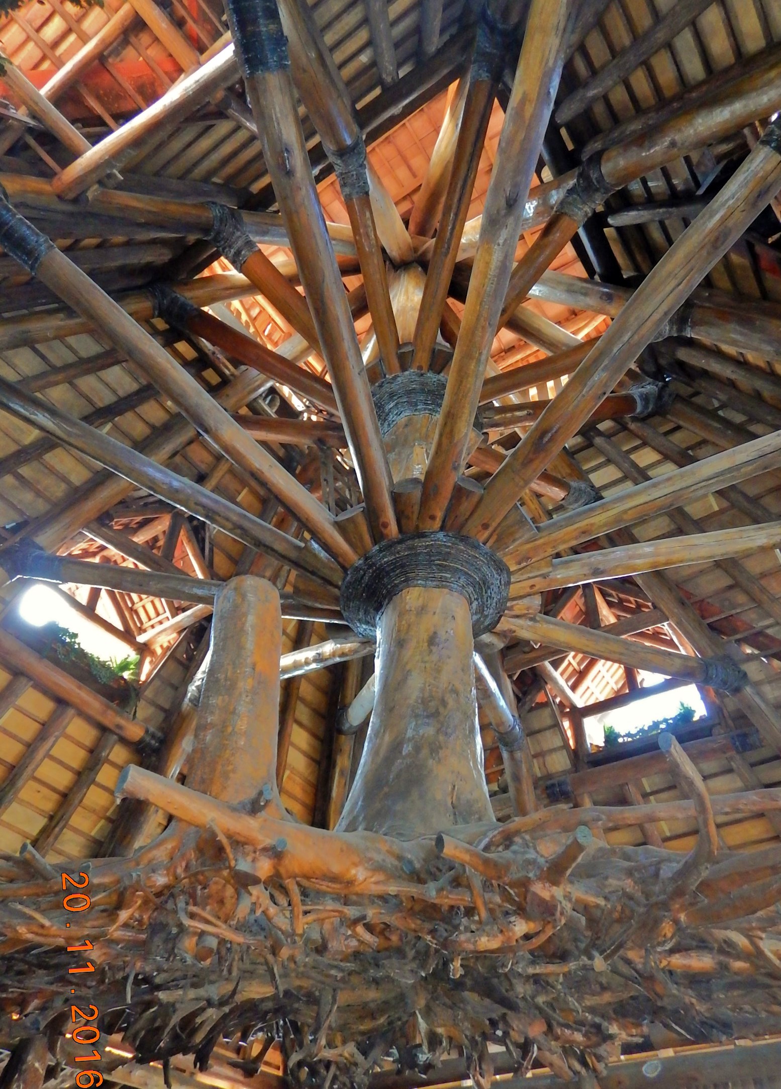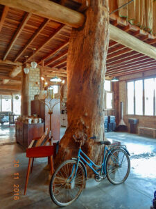 Imagine-se chegando para tomar um simples cafezinho e se deparar com um tronco de eucalipto de 20,5 toneladas!, pendurado no teto do salão principal. Demora até você se habituar com a imagem, porque, com absoluta certeza, nunca viu nada igual. Ah! E não se esqueça de fechar a boca.