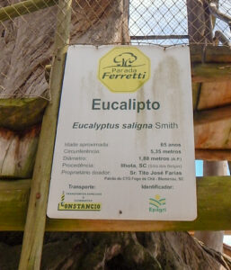 Trata-se de um eucalipto da espécie Saligna. De seus 32 metros de altura foram pendurados 21 metros, incluindo um broto que você vê à esquerda na foto, fundido na árvore maior.