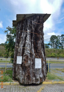 No estacionamento está este tronco em exposição com as seguintes especificações:
