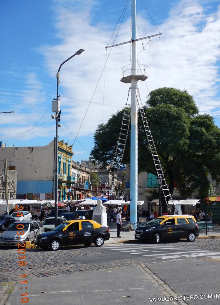Em frente ao largo, fica o icônico prédio localizado nas esquinas das ruas Caminito e Magallanes.