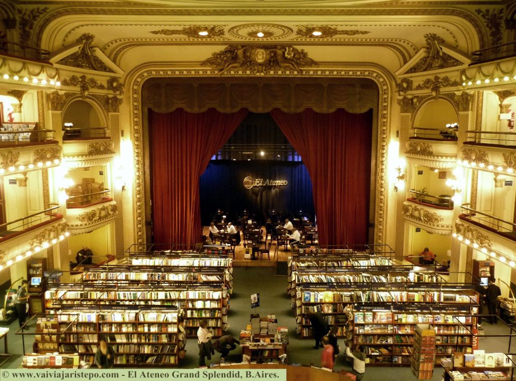 A livraria El Ateneo, considerada ponto turístico, é a mais famosa de Buenos Aires e essa fama não se deve exclusivamente a seu glorioso passado, mas também às obras arquivadas em quilômetros de prateleiras no térreo e em mais duas galerias. São 120 mil títulos distribuídos em 2.000 m² de área.