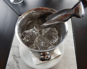 Em uma das fotos que tenho arquivada, um dos senhores do grupo mostra um pedaço da pedra de gelo que havia sido pescada minutos antes com um único destino: os baldes de gelo de nossas mesas.