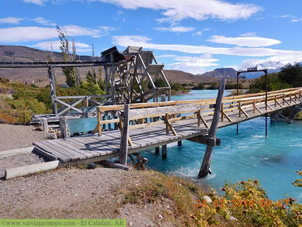 Após a atracagem no cais da estância fizemos uma caminhada de aproximadamente 20 minutos até chegarmos ao restaurante. De lá seguimos até o Rio Caterina que nasce no Lago Anita e desemboca no Lago Argentino. Este rio fica próximo à parte habitável da estância; foi onde a guia nos apresentou à antiga fonte de energia que nutria a estância – uma roda d’água que você vê na foto em destaque e aqui embaixo.