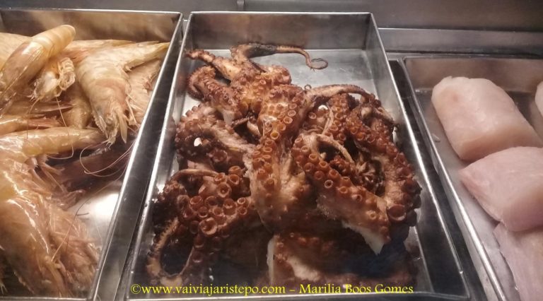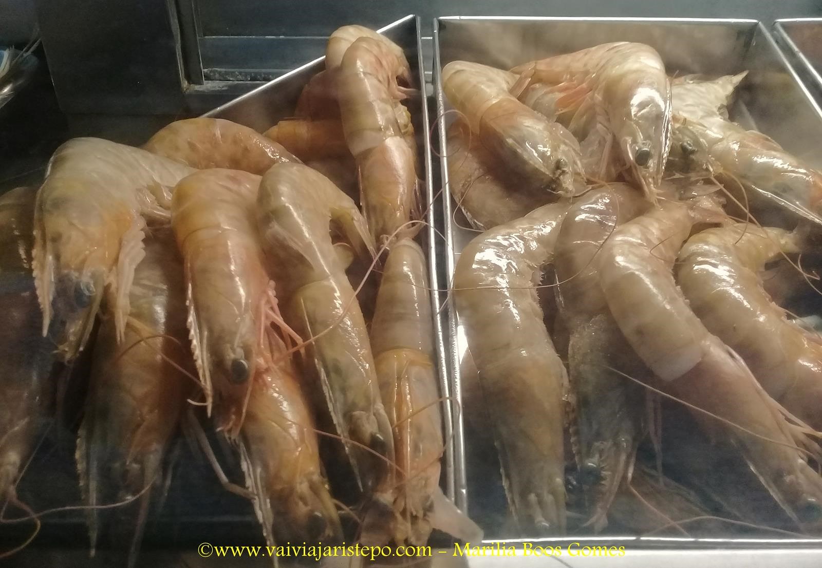 Camarões imensos, lagostas, lulas, vieiras, mexilhões, polvo, peixes nobres (pargo, haddock escocês, um luxo!, salmão e badejo) e outros mais populares como a nossa prestigiada sardinha, fazem aguar a boca de quem olha a vitrine logo na entrada.