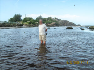 G. J. são as iniciais  do nome da peça que deu essa bobeada, ficou com cara de quem deixou cair o sorvete. Com água acima dos joelhos, ficou atolado na areia do rio  e não conseguia se mexer. E ali ficou, parado no meio do rio aguardando ajuda, enquanto ríamos prá valer da cena, sem desatolar G. J. Quem mandou sair da praia arrumadinho como filho de barbeiro? Não escapou nada! Nem a cabeça ficou fora d’água! Mergulhou totalmente no rio em um batismo forçado espetacular. Rimos muito com o tombo do amigo. Portanto, fique esperto! Ah! E o Rio Jordão fica bem mais longe…