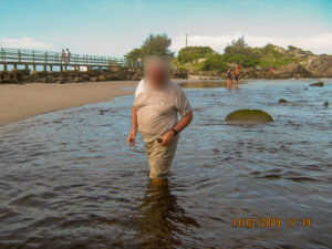 Por experiência própria, certa vez atravessamos o rio voltando de Matadeiro e um amigo, cheio de boa vontade a nos orientar onde pisar e não pisar, acabou tropeçando em uma pedra e fez uma aterrissagem forçada no fundo do rio com roupa e tudo. Prá completar a cena, um chinelo emprestado lhe escapou dos pés, boiou e começou a ser levado rapidamente pela forte correnteza em direção ao mar. Quando o dono das “legítimas” percebeu que ia perder a sandália, deixou nosso amigo de lado, ao sabor da sorte, e correu rio abaixo atrás da possível perda.