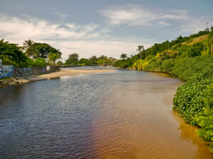 Nesta foto, vemos as ondas da Praia do Matadeiro, ao fundo, juntamdo-se às águas do Rio Quinca Antonio.