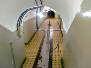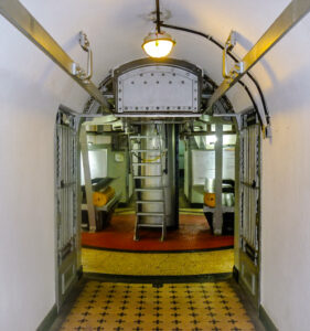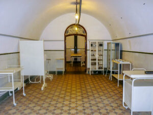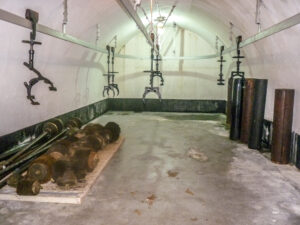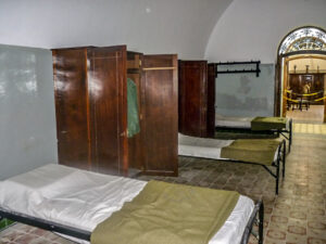 O comandante ocupava uma das salas protegidas por essa densa parede por motivos óbvios.