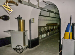 A rocha onde ficava a igrejinha foi destruída para a futura colocação da cúpula dos canhões, e uma muralha de cimento foi erguida no lugar. Nesta obra houve a intenção de este paredão assemelhar-se com a rocha destruída do promontório.
