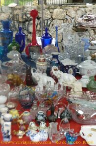 Em meio a barracas que oferecem LPs, máquinas de escrever, telefones, bibelôs, vidros e cristais antigos, você encontrará grifes modernas tais como de bolsas, sapatos, roupas, bijouterias e jóias bem interessantes em modelos superatuais.