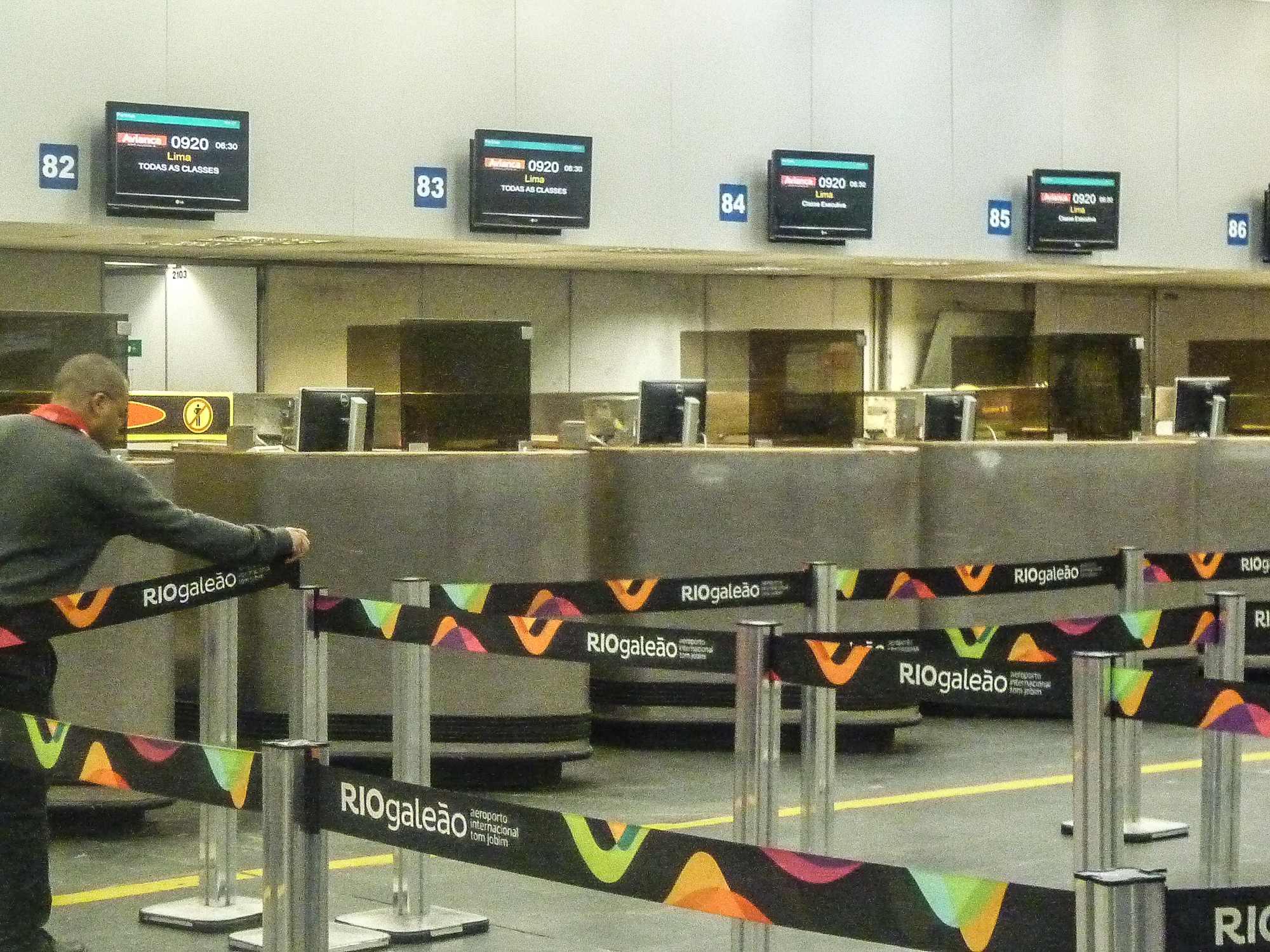 Conforme escrevi acima, o painel do aeroporto já havia anunciado o início do check-in quando um funcionário da empresa começou a mexer nas colunas de metal e fitas para organizar a fila.