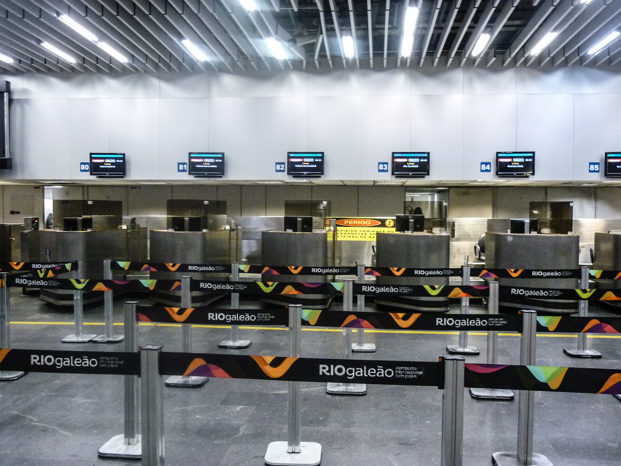 Pontualmente, o painel anunciou a abertura do check-in. Mas quem disse que alguém apareceu para trabalhar? Quem disse que a companhia aérea relevou a presença de deficientes físicos, idosos, mulheres grávidas e acompanhadas por crianças como preceitua a lei? Não tomaram conhecimento! Vi funcionários que mais tarde trabalharam no check-in chegando após esse horário.