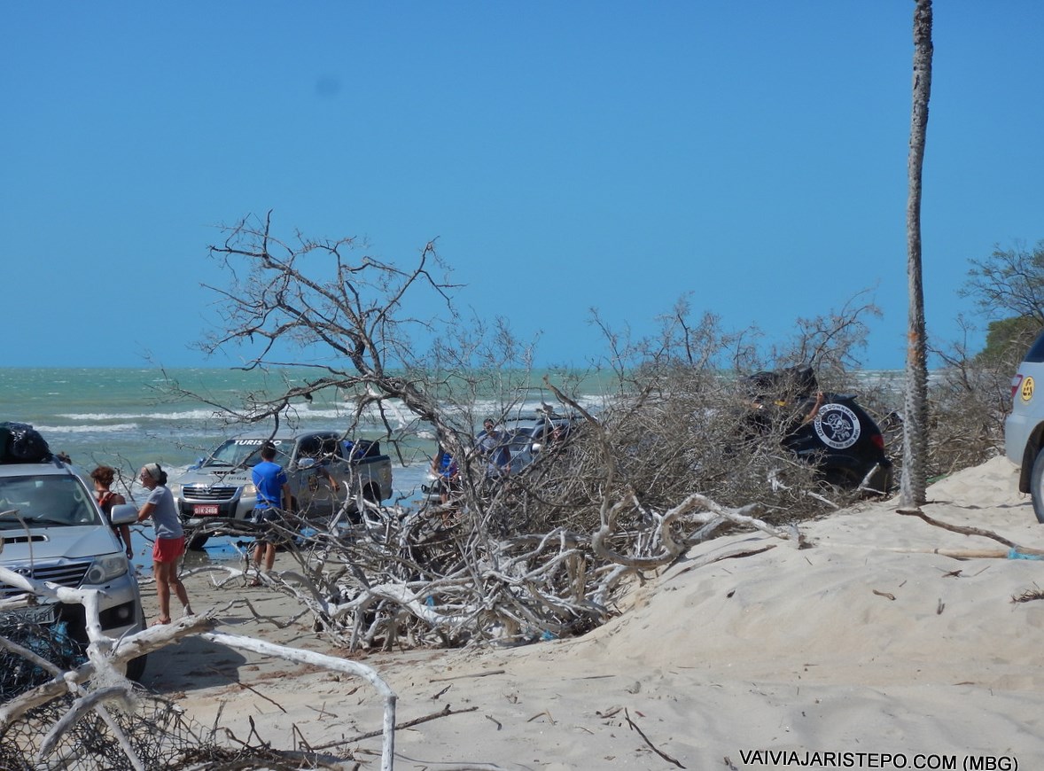 Quando aceitamos a sugestão de Paulo, não foi à toa. O que aconteceu? Ao chegarmos à praia, vimos que a maré estava alta e que não seria possível chegarmos à margem do Rio Coreaú trafegando pela beira do mar conforme imaginamos.