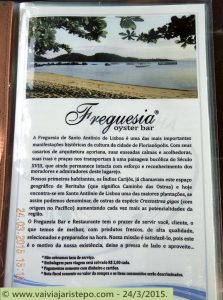 Acho interessante que a maioria dos restaurantes do bairro faz questão de inteirar o cliente a respeito da história do lugar e isto acontece assim que abre o cardápio. E para não fugir à regra, o FREGUESIA OYSTER BAR resumiu o fato de maneira atraente.