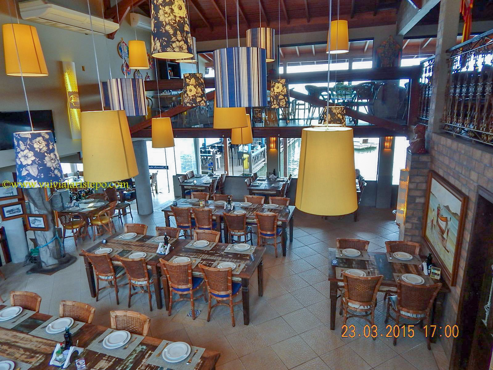 A decoração é descontraída e combina com beira de praia porque deixa todos muito à vontade. Os garçons são atentos e simpáticos, a comida é excelente e a recepção do proprietário – Ói, ói, ó! – fazem parte das especialidades da casa.