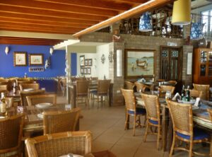 No restaurante, além da amplidão dos salões térreo e jirau, o Rancho Açoriano também adotou a idéia do deck e estendeu seu espaço para quem desejar fazer parte da bela paisagem – mar…, céu…, sol…, pipilar de gaivotas…, barulhinho de onda quebrando na beira do mar…