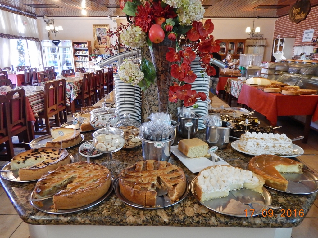 A variedade de embutidos e queijos é enorme, bem como a quantidade de geleias, mel e manteiga de boa qualidade para você saborear com “doratas” ou biscoitos doces e salgados. Assim mesmo, pronunciadas com um R só, com D em lugar de T e T substituindo o D, como pronunciava uma de minhas saudosas tias de nome Erna.