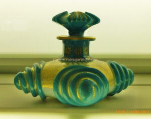 Nesta vitrine vimos vidros de perfumes muito especiais; alguns são lindos, porém muito grandes o que dificulta o manuseio. A escultura que se vê na foto abaixo serve como exemplo. Primeiramente, quem diz trata-se de um vidro de perfume? E manuseá-lo, seria fácil?