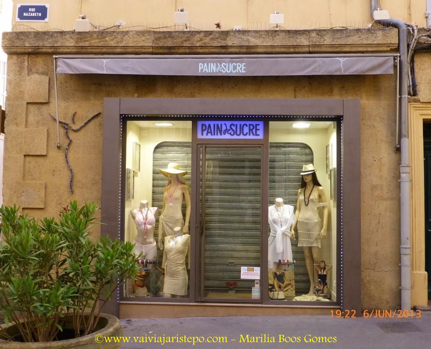 Além do mais, lojas de grifes famosas tais como Mango, Lacoste, Mac etc, incluindo as nossas “legítimas” Havaianas, valorizadíssimas, não poderiam faltar em Aix.