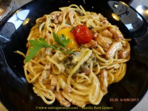 Seu aroma e sabor são surpreendentes. O perfume é semelhante ao da folha de oliveira verdinha quando a gente a amassa na mão. Até então nunca havia experimentado um azeite assim tão puro, tão natural. Fiquei fã, tenho procurado um azeite que se pareça com este aqui no Brasil, mas… é difícil.