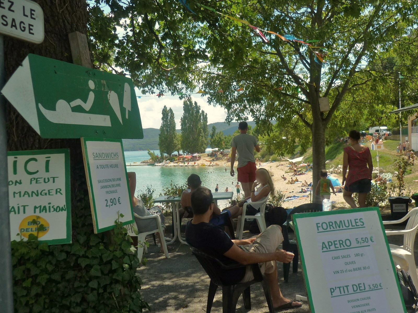 na parte mais habitada do lago há estrutura hoteleira, restaurantes e praia. Mesmo assim, não perca a oportunidade de fazer um bom pique-nique às margens de uma das paisagens mais bonitas da Provence. Garanto que não se arrependerá por ter-se integrado a um hábito comum dos franceses.