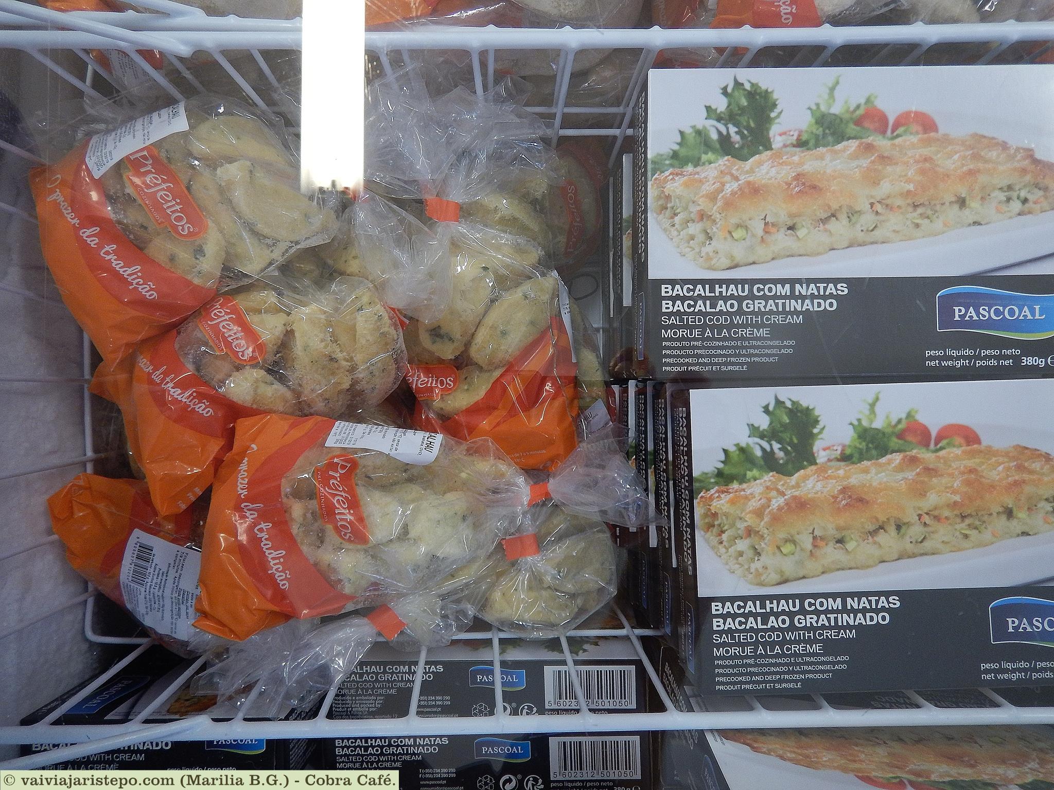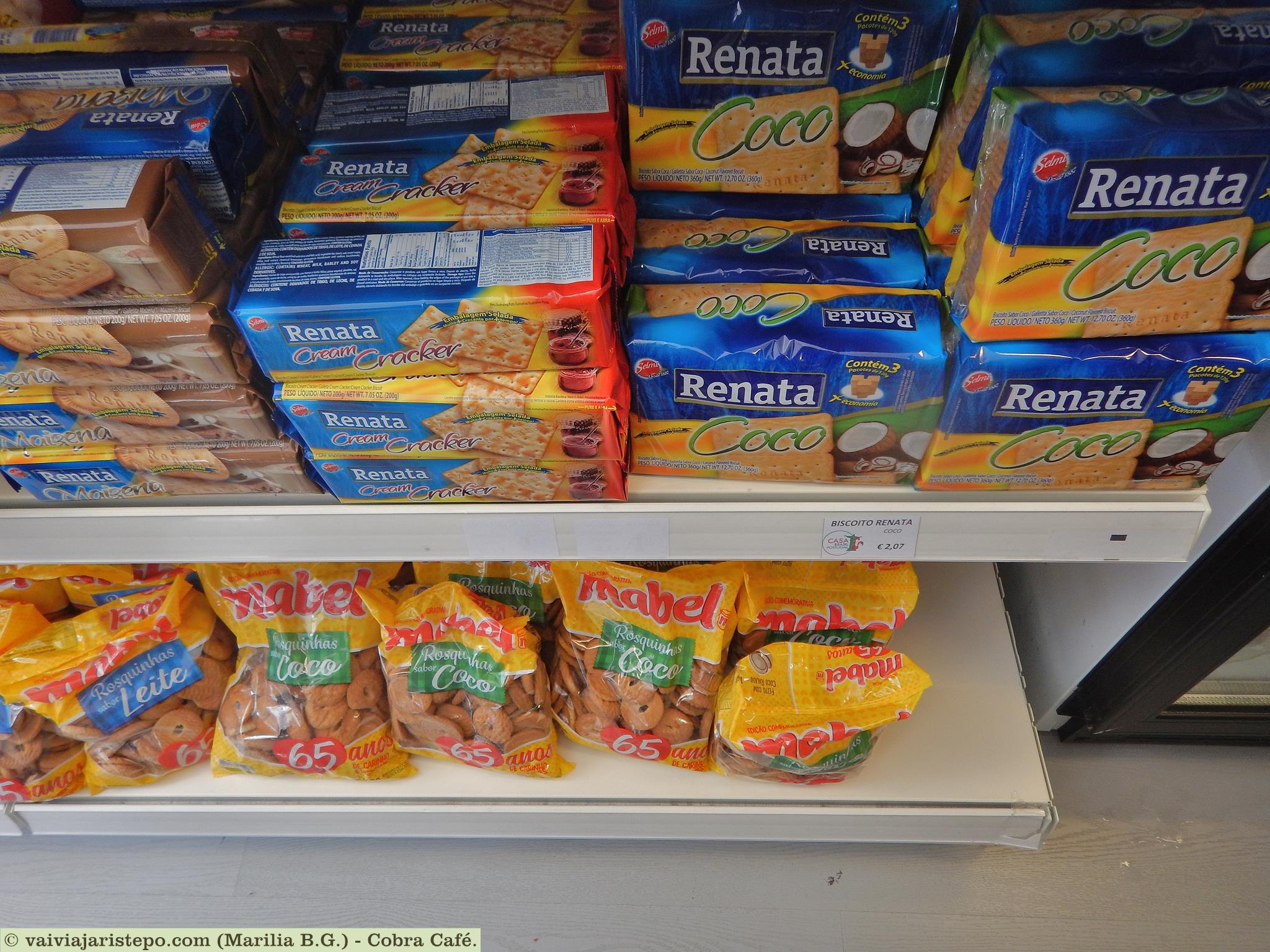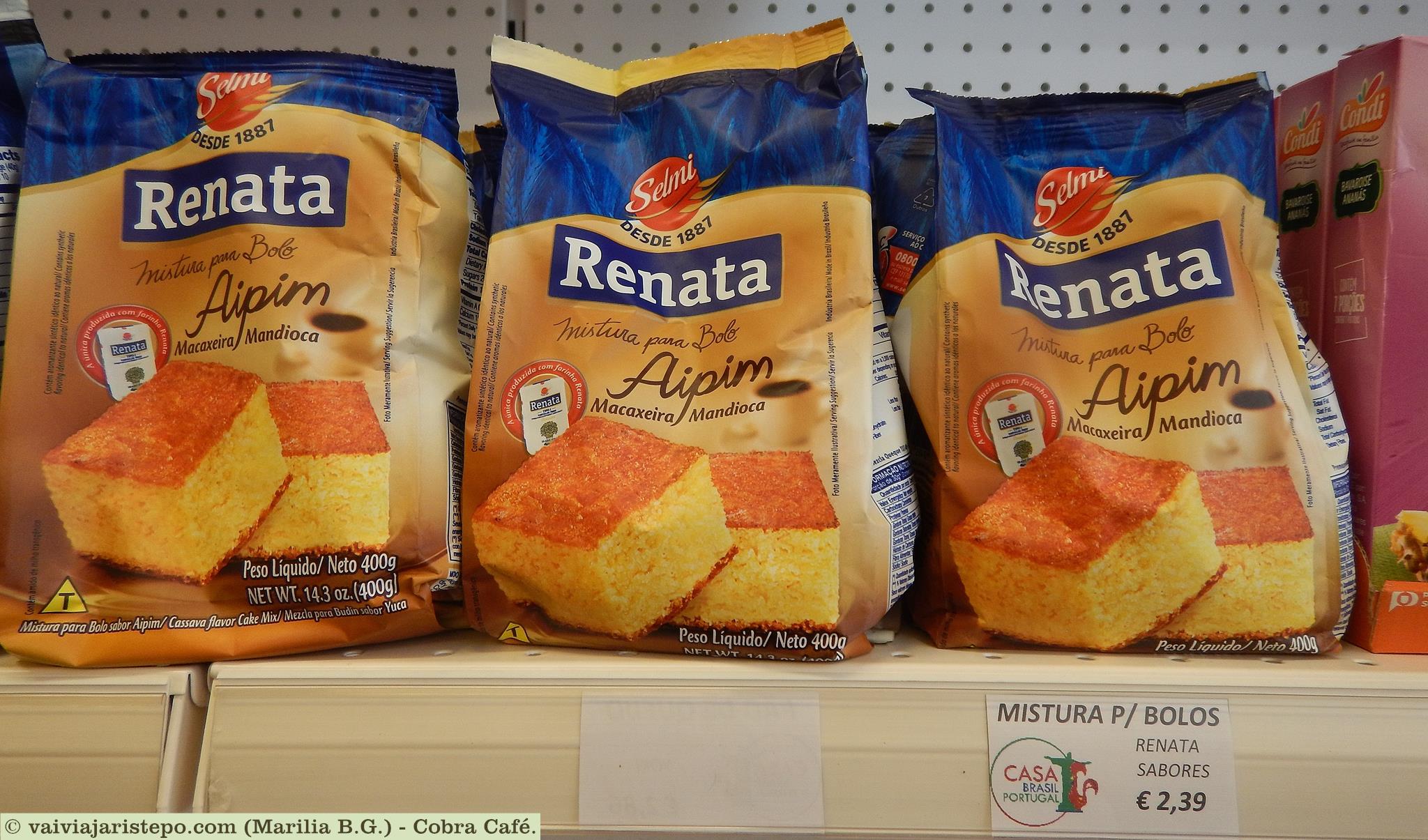 Uma novidade que me escapou foi este bolinho de aipim, perfeito para acompanhar um cafézinho. A massa é fabricada pela conhecida Renata. Foi outro produto que também nunca vi no Brasil.
