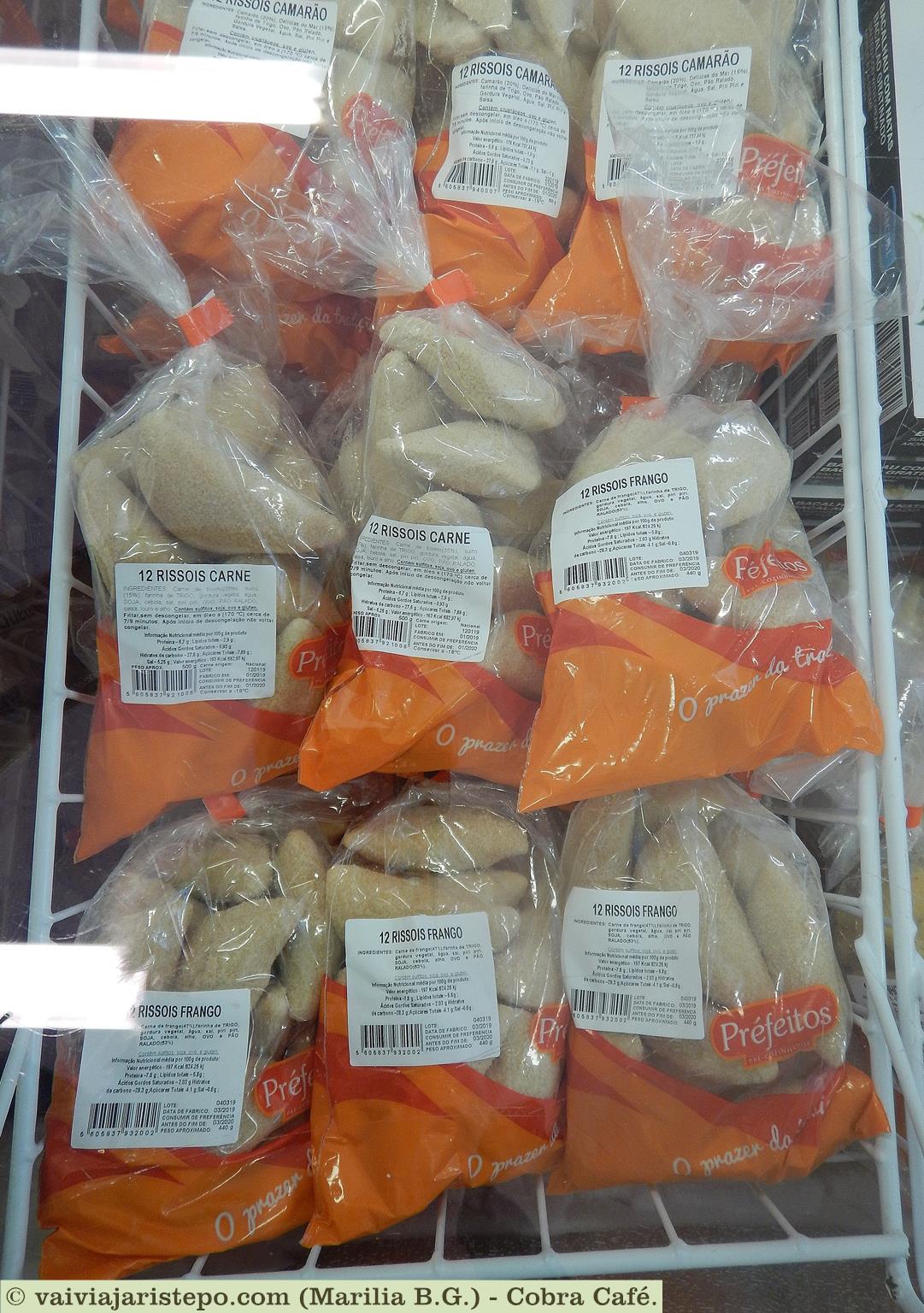 Risoles de camarão, frango e carne podem iniciar os trabalhos da comilança. E se bater a preguiça de ir pro fogão, há pratos prontos congelados, massas, molhos, temperinhos. Tem até fubá e “pão ralado” – a farinha de rosca.