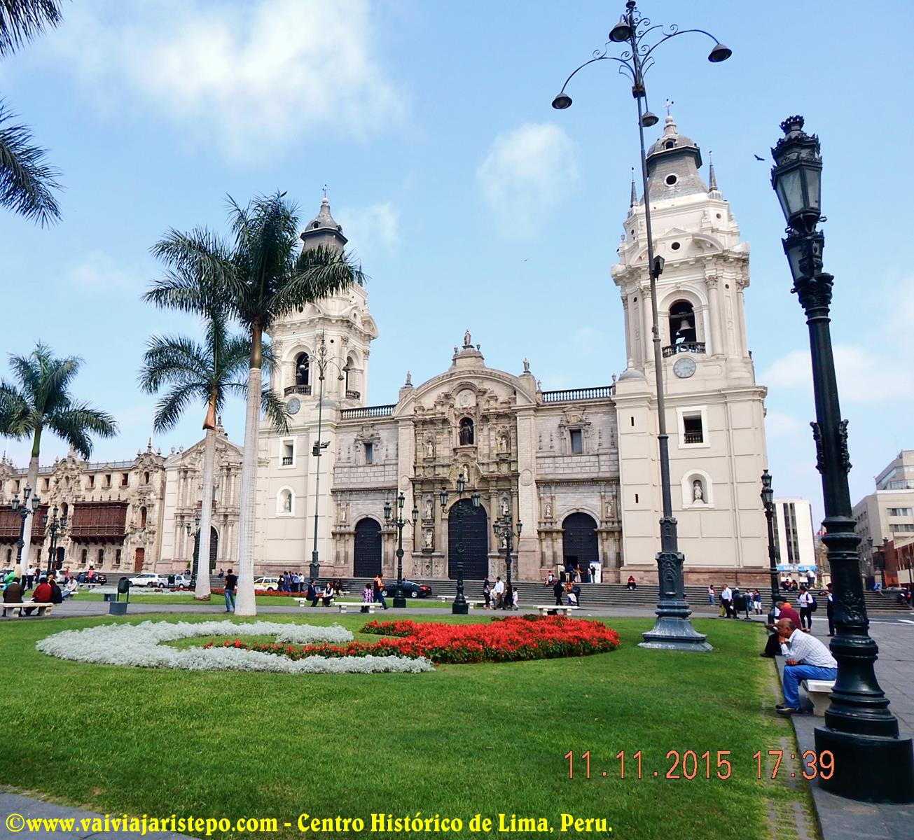 A Praça Mayor (ou Praça de Armas de Lima) cercada pelos prédios da Catedral de Lima, do Palácio do Governo, do Palácio Arquiepiscopal de Lima, do Clube da União e do Palácio Municipal.