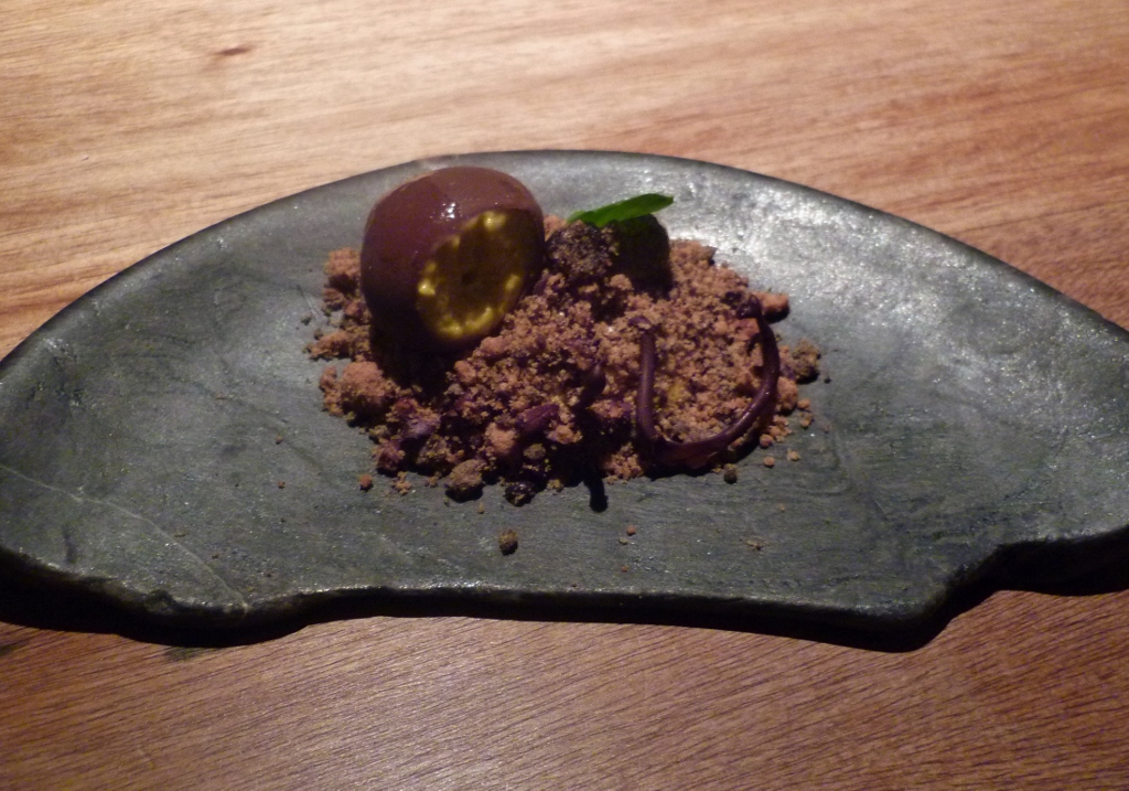 Farofa especial com lúcuma (a fruta que se vê na foto abaixo) e, se não me engano, havia um toque de chocolate.