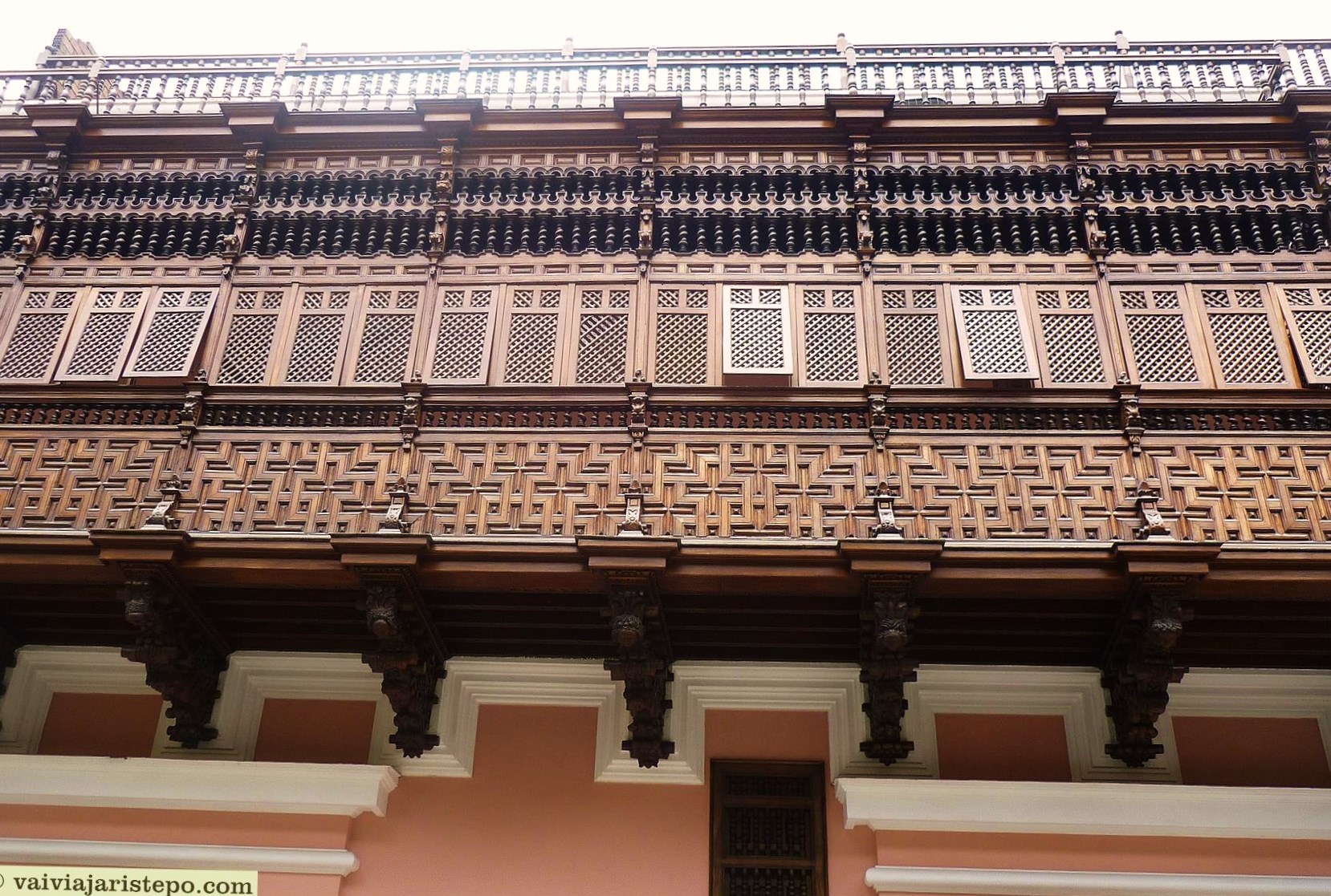 Os balcões são ricamente esculpidos em mogno e cedro. Todo o material da construção deste prédio foi importado da Espanha.