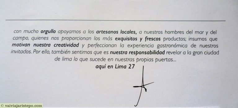 No cardápio encontramos uma significativa, bem lembrada e justa homenagem oferecida pelo restaurante aos artesãos e agricultores peruanos. Ideia genial de quem a propôs.